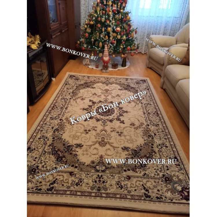 Ковер отличного качества. Ворс плотный, невысокий, приятный. Цветовая гамма подобрана очень стильно. Подойдёт к любому интерьеру. Размер чуть меньше заявленного ( 154х230). Упакован трубочкой . Доставили быстро.
